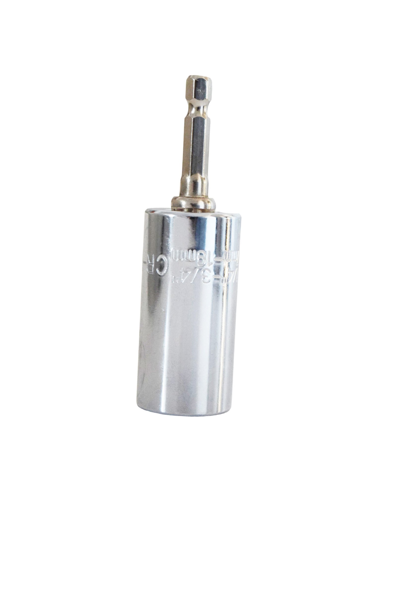 This professional-grade universal swivel socket features a 3/8-inch drive connection compatible with most ratchet wrenches. The socket is precision-engineered from durable CR-V (chromium-vanadium) steel, ensuring high torque resistance and longevity. Its 18mm hexagonal opening is designed to securely fit standard metric bolts and nuts, while the swivel joint allows flexible access to confined or angled spaces. The socket body is laser-etched with clear size markings (“18mm”) and drive specification (“3/8”), alongside material certification (“CR-V”) for quality assurance. The polished silver finish enhances corrosion resistance, and the compact design balances strength with maneuverability. Ideal for automotive repair, machinery maintenance, and industrial applications, this socket combines robust construction with functional versatility. Displayed against a clean white background, its professional aesthetics highlight practicality and precision engineering.