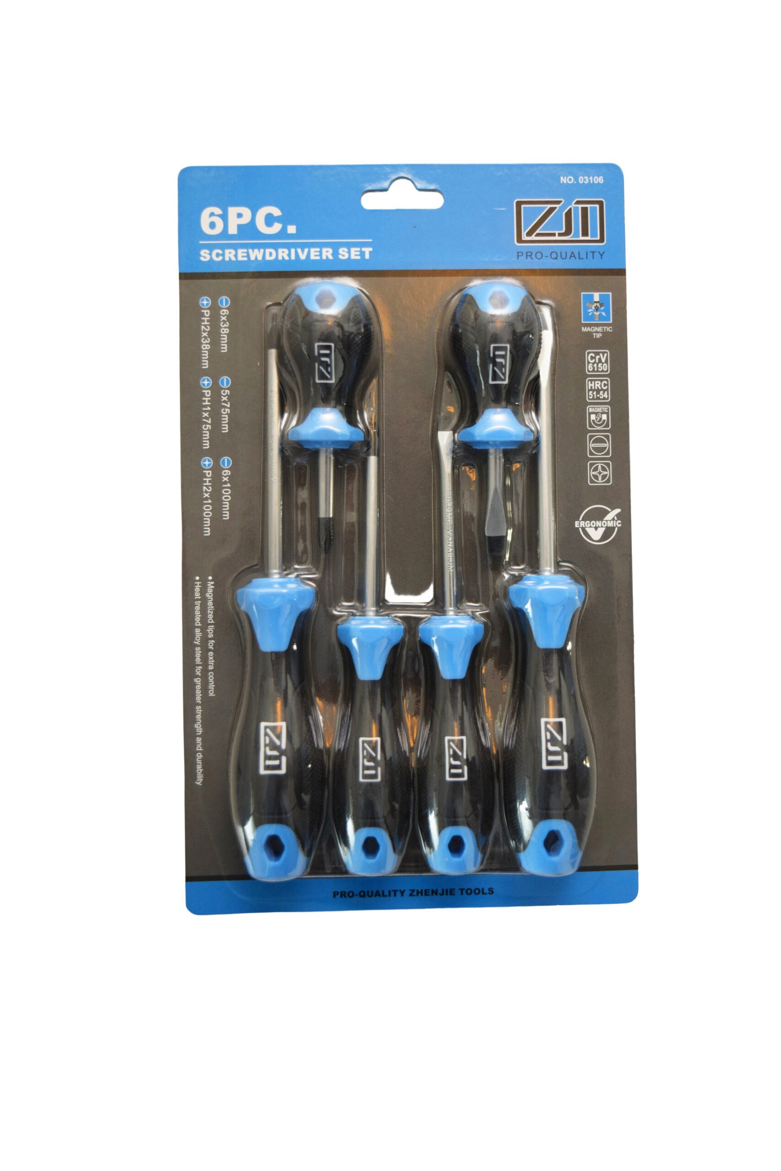 ZJ PRO-QUALITY 6-PIECE MAGNETIC SCREWDRIVER SET (Model: NO.03106)